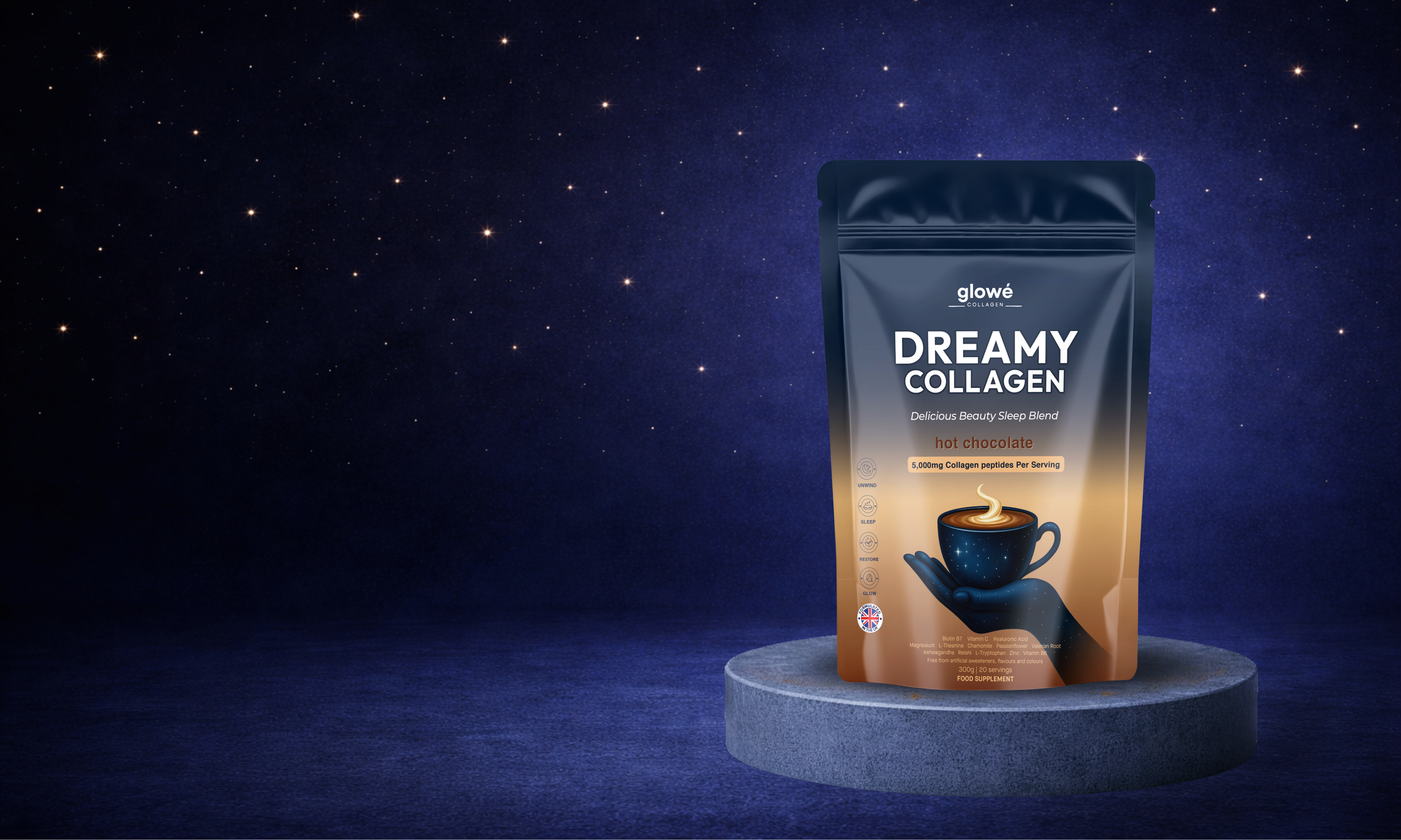 Glowé Collagen is crafted with carefully selected ingredients, combining functional nutrients and calming botanicals to support your evening ritual. Each element is chosen with intention — creating a blend that feels effective, gentle, and easy to enjoy as part of your daily routine.